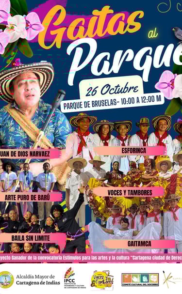 Disfruta de la música de gaitas en los parques emblemáticos de Cartagena y Bolívar, celebrando nuestras tradiciones musicales autóctonas.